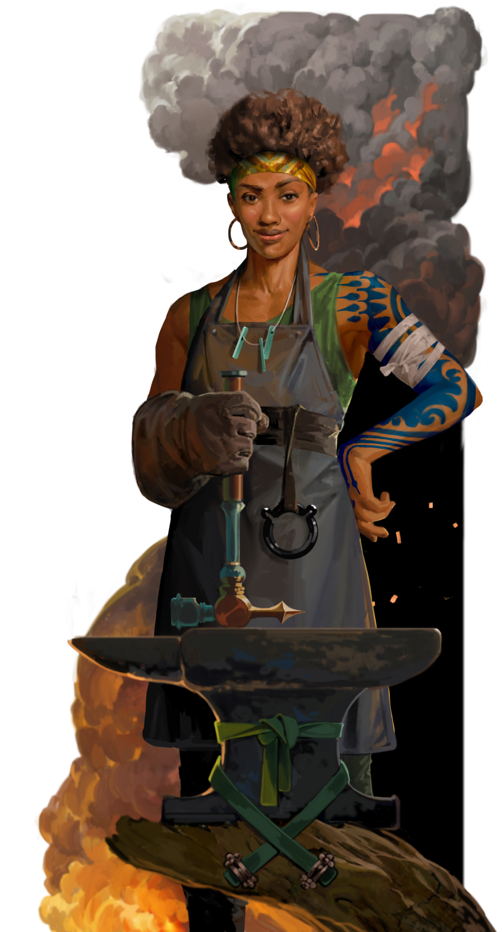 Chris: Let’s talk about Nessa next. Nessa’s our smith, and smiths were sometimes seen as semi-magical. Nessa’s the first person you meet in the village, but she has a secret or two.
